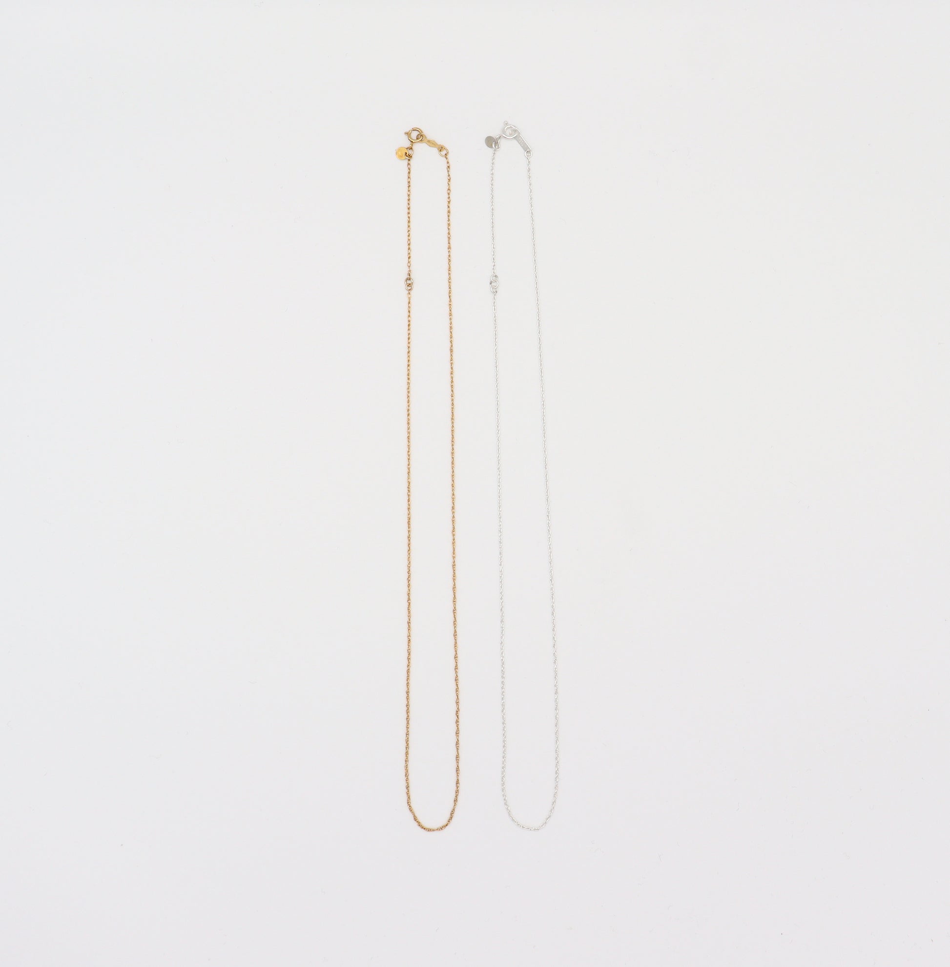 華奢なロープチェーンのネックレス。雪のように軽く、キラキラと上品に輝きます。