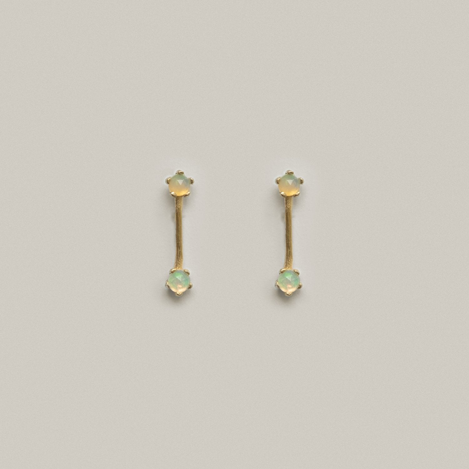 棒状のモチーフに、二粒のオニキスをあしらったピアス。