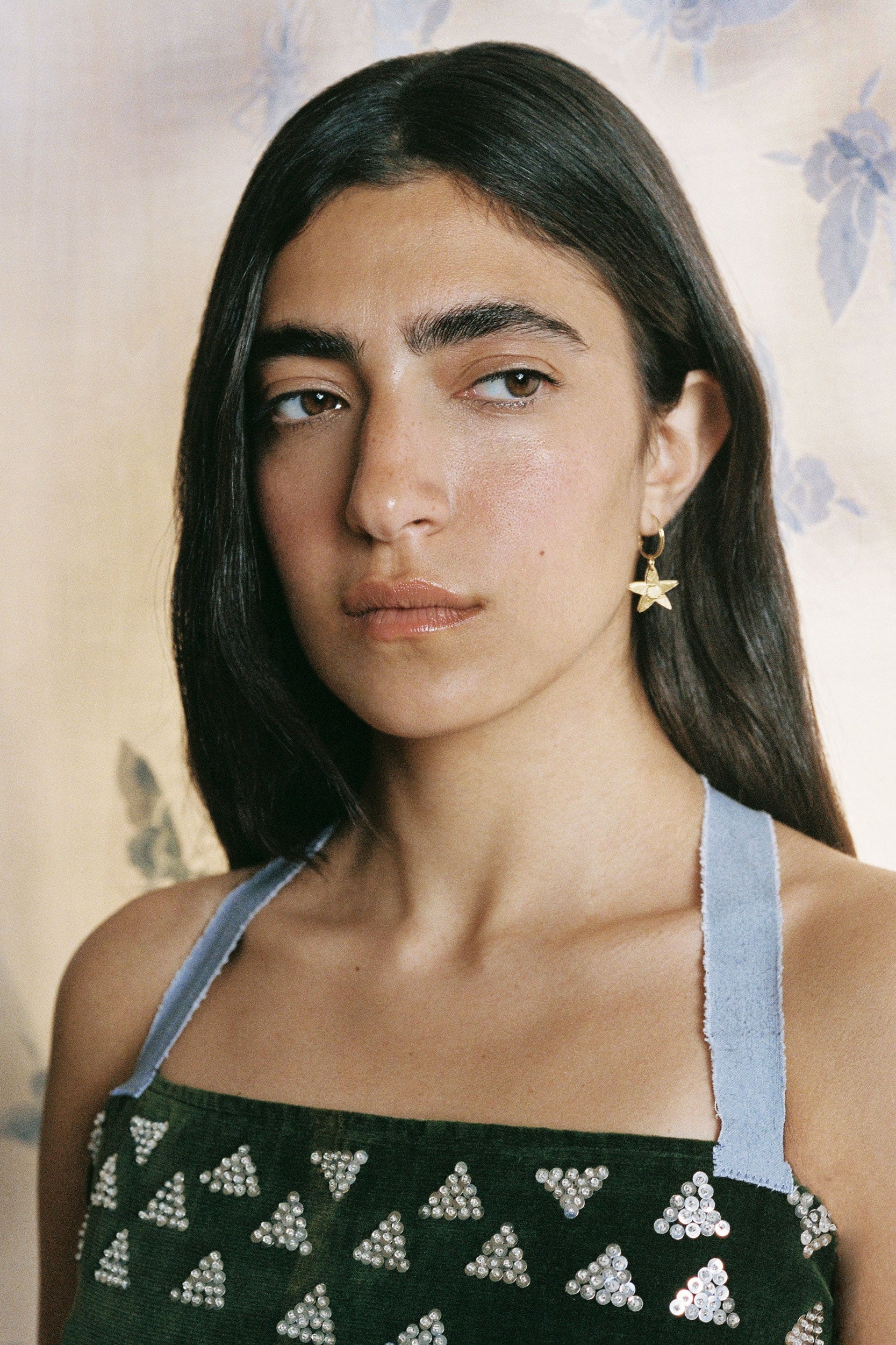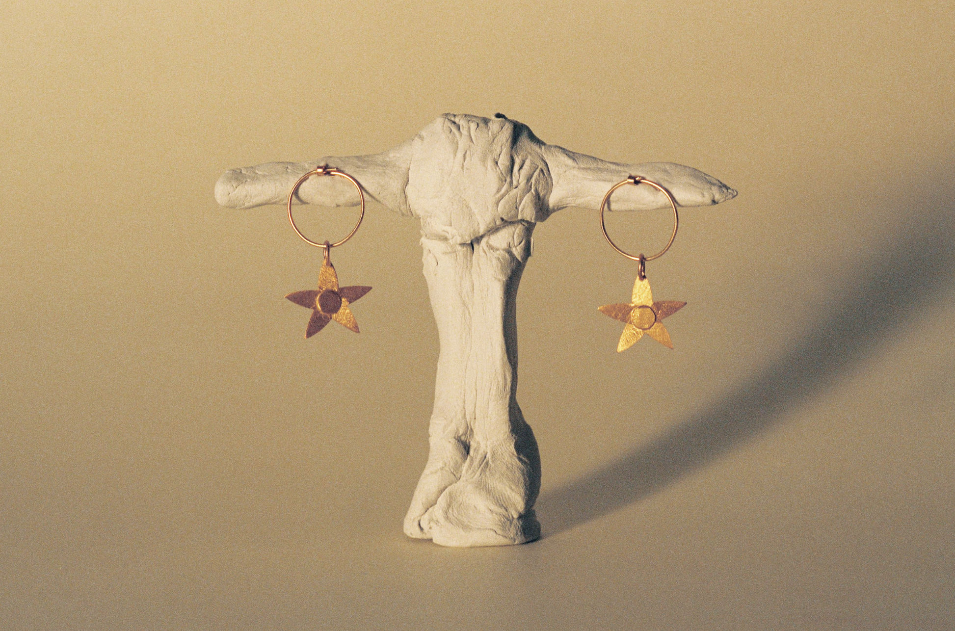 紙のように薄いスターモチーフがヒラヒラと揺れる様が美しく、ヴィンテージライクなマットゴールドの風合いも絶妙。カジュアルなお洋服と合わせて日常のアクセントにも、ドレスアップにもおすすめです。