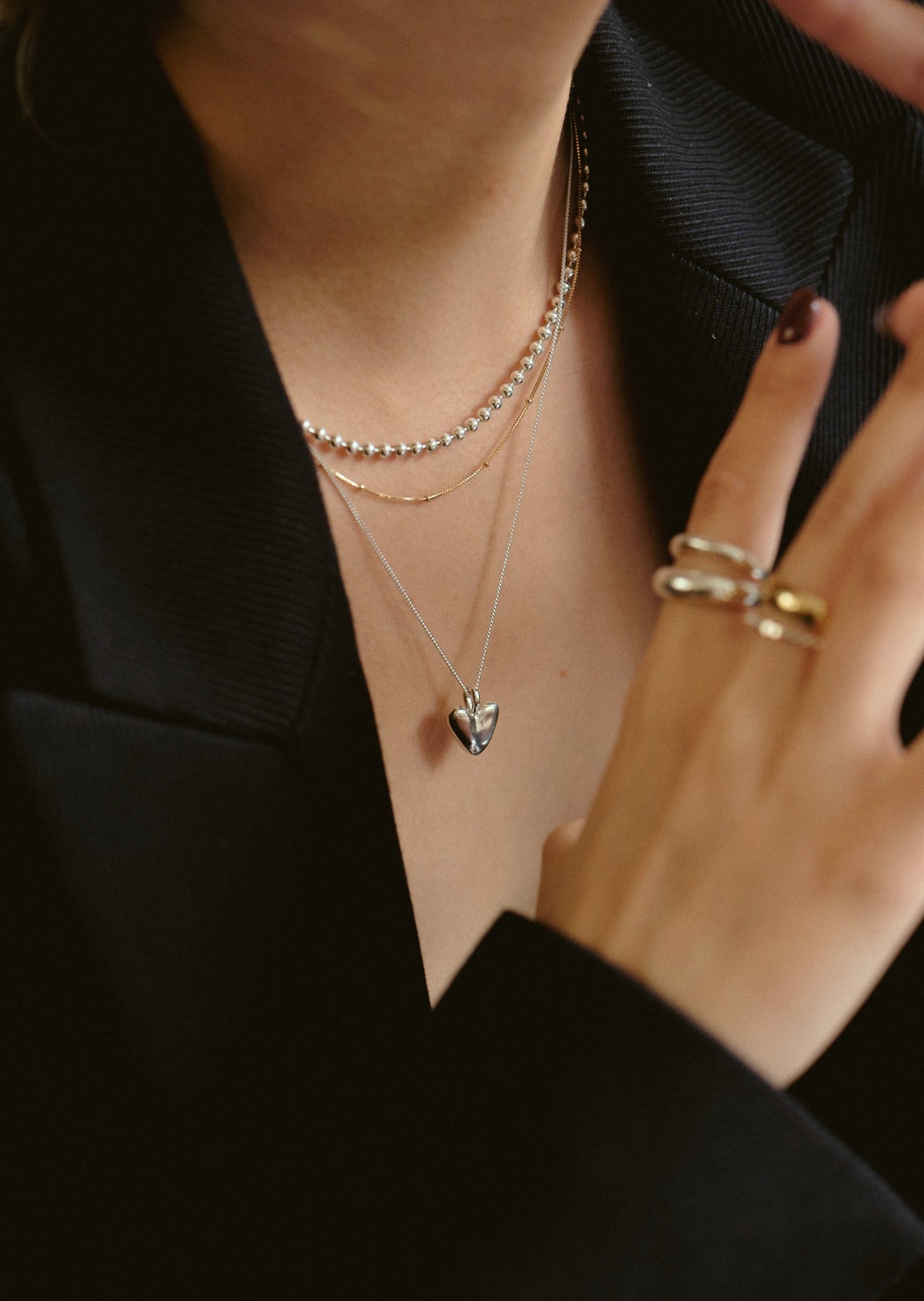 3mmのボールチェーンの38cmチョーカー。他のネックレスと重ね付着けしやすい長さで、シールバーとゴールドをミックスしたコーディネートも◎