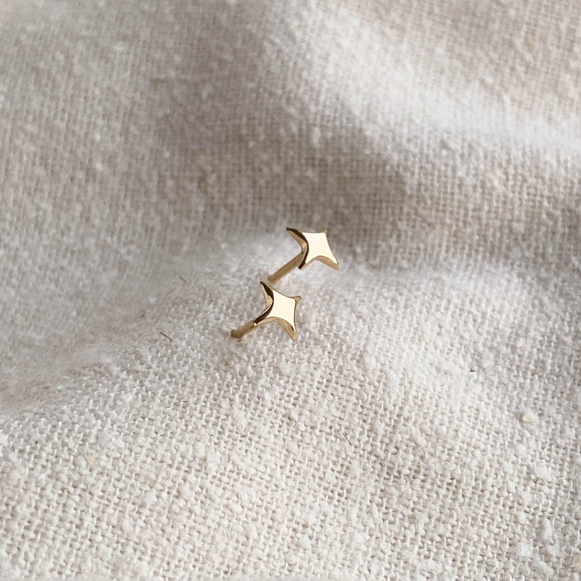 14金の小粒スタッズピアス。両耳セット販売です。セカンドホールへの着用もおすすめです。
