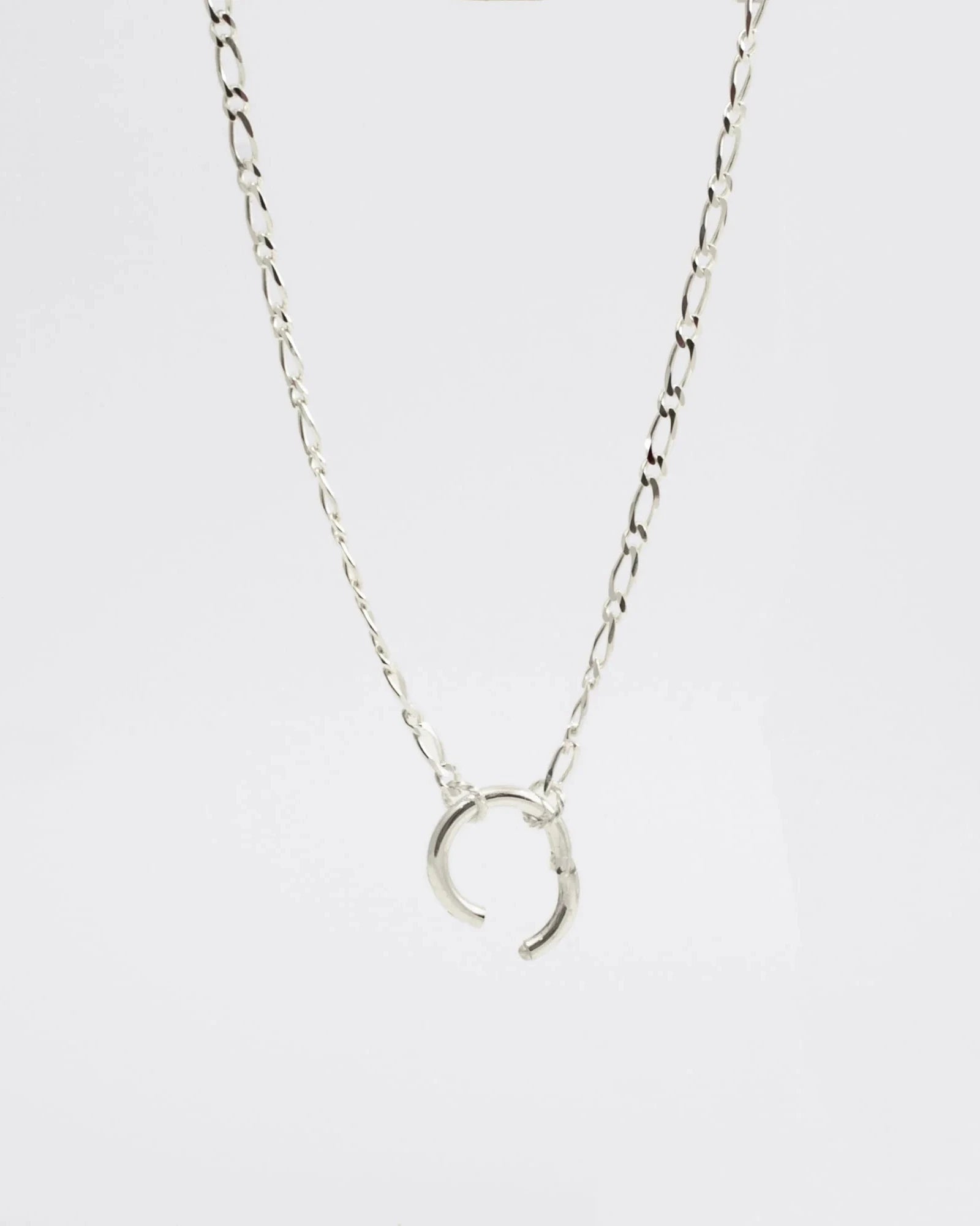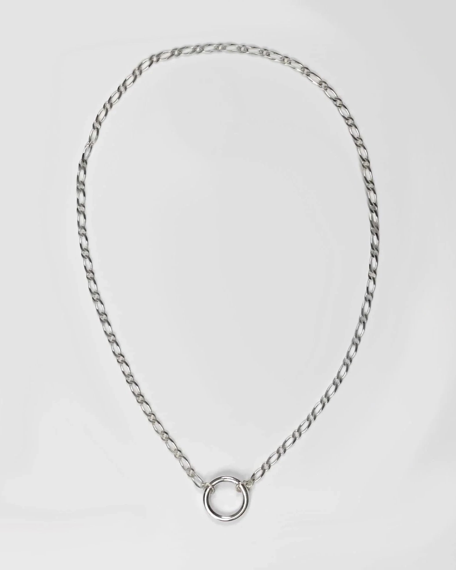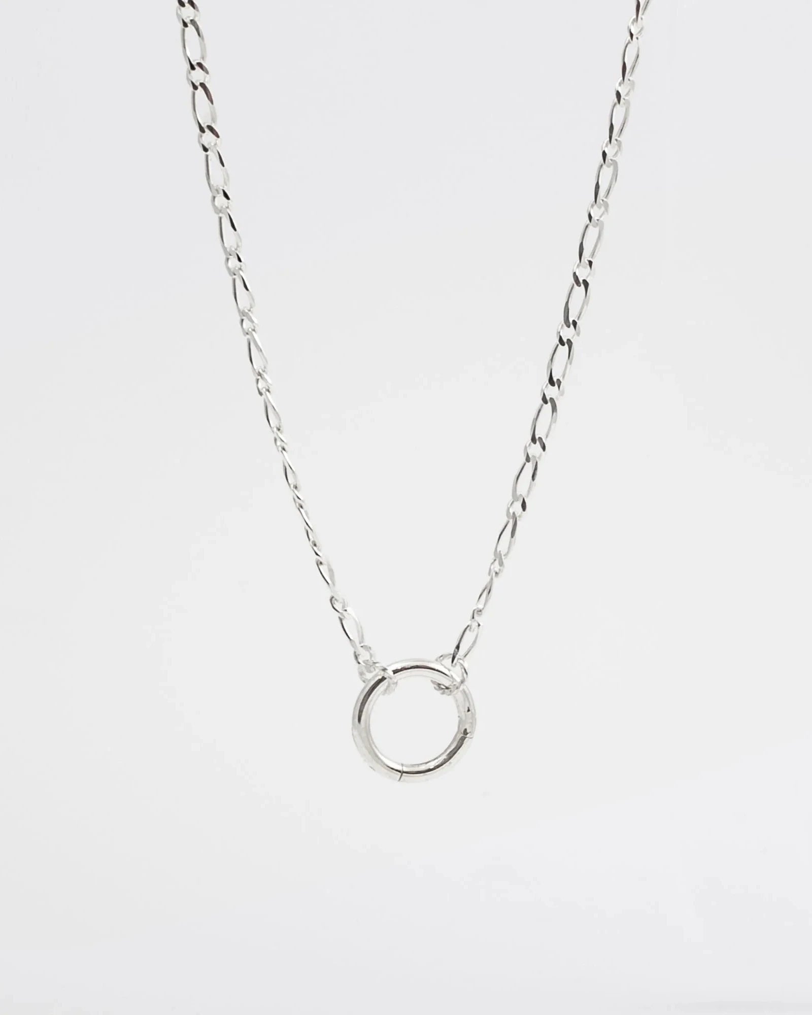 シルバー製のFIGAROクラスプネックレス。イタリアのオペラに由来するクラシックなチェーンデザインで、上品な存在感を演出します。大きめのクラスプは、フロントでもバックでも映えるデザイン。お好みのチャームやリングを簡単に取り付けられます。