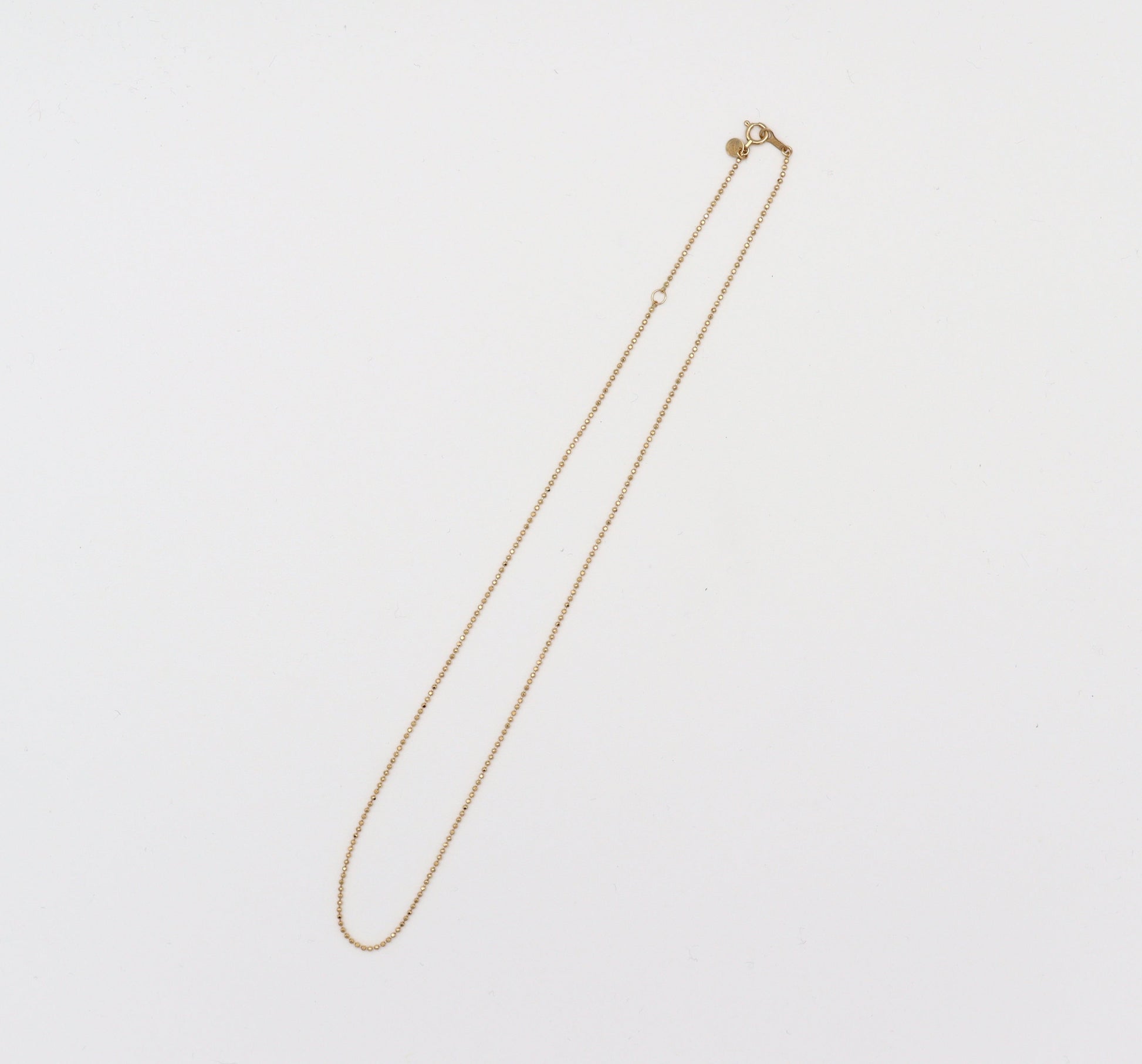 18金のボールチェーンネックレス。表面にカッティングを施しており、角度によってキラキラと輝きを放ちます。37cmと40cmの長さ調節が可能で、他のネックレスとの重ね付けもオススメです。