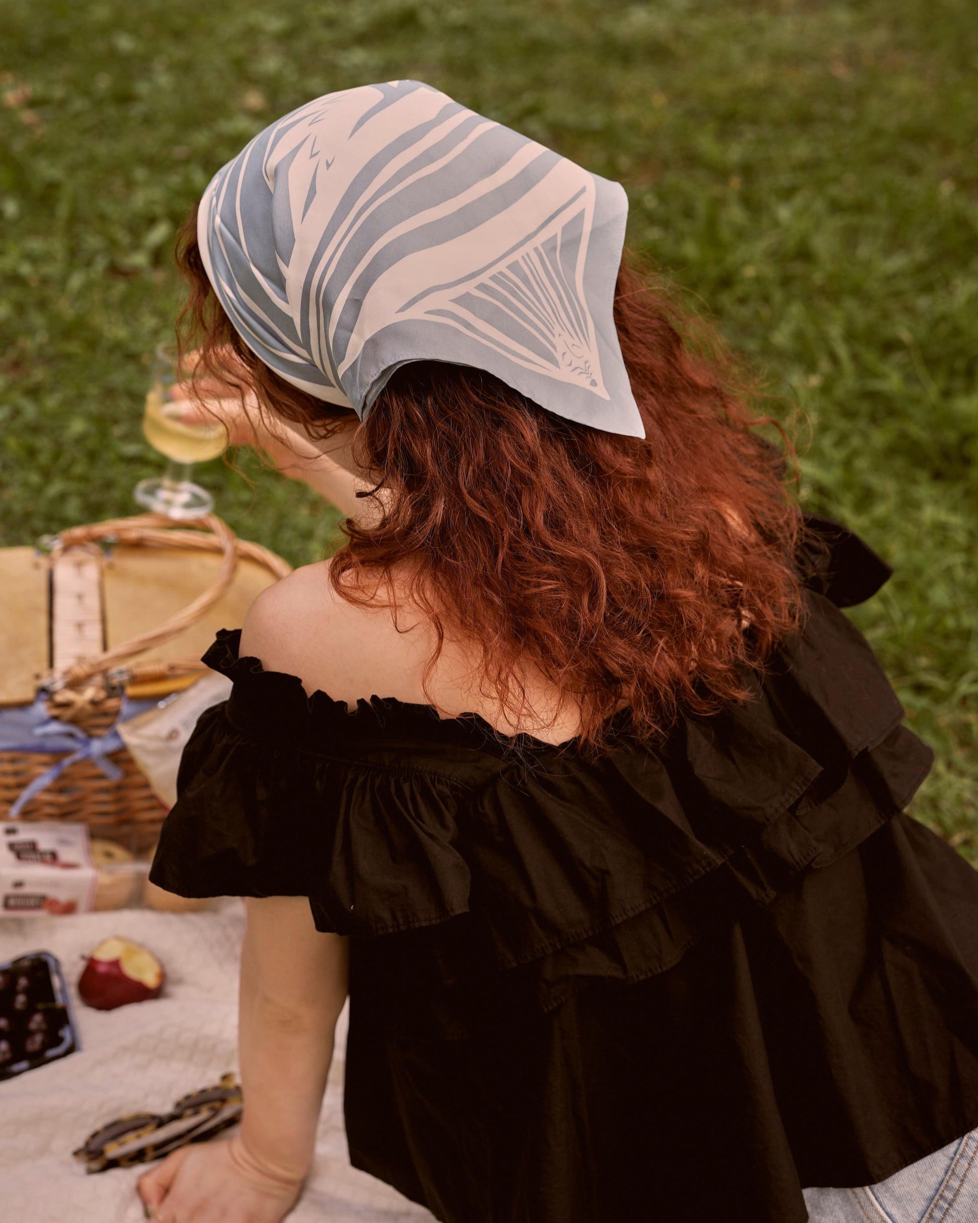 精霊がエーテルから見守っている様子のアートをプリントしたスカーフ。シルク100%のため非常に柔らかく、時間が経つと更にとろみを帯びてきます。折りたたんだ状態で発送させていただきますのでたたみジワが気になる場合は衣類用スチーマーをご使用ください。