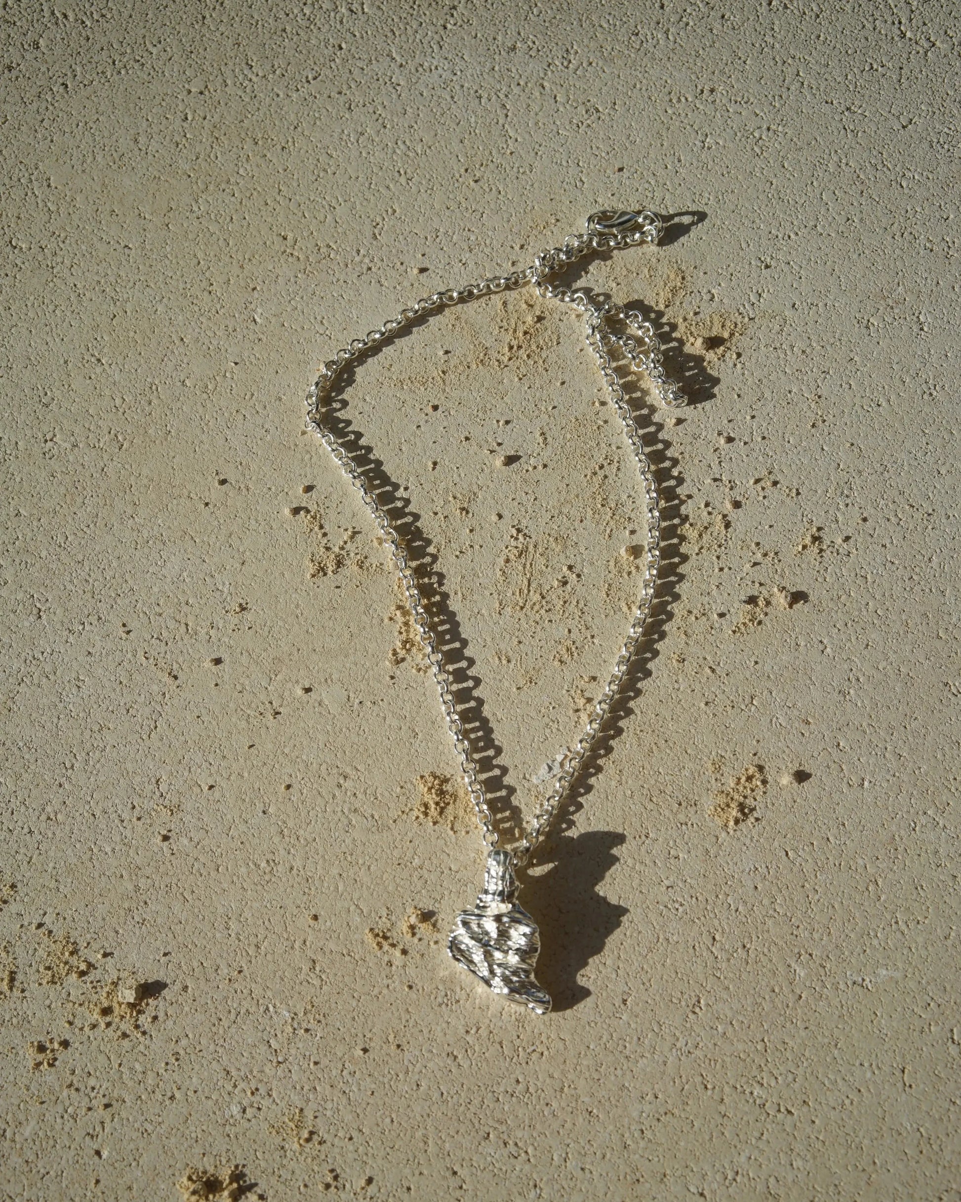 マットでヴィンテージ調な質感の抽象的なデザインネックレス。トップは取り外し可能なため、チェーン単体でもご着用いただけます。デイリーな装いのポイントにもドレスアップシーンにもおすすめです。