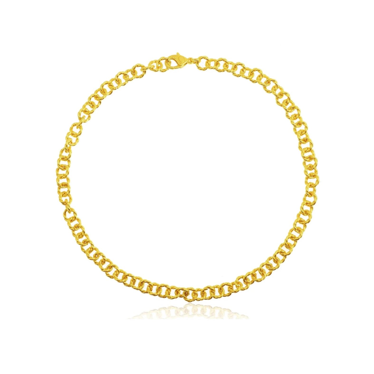 鎖のように交互に連なったチャンキーなチェーンネックレス。ハンドハンマーで柄をつけてあり、存在感がありながらもエレガントさを兼ね備えた一点です。