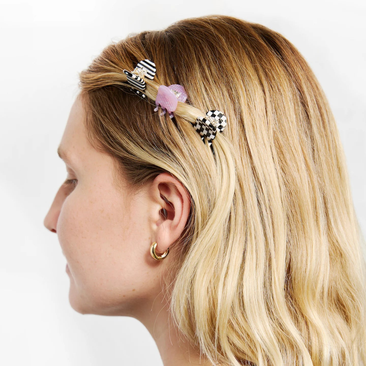 ミニサイズのクリップ6点セット。非常に丈夫で毛束をしっかりホールドしてくれます。ツルッと光沢のある仕上げです。
