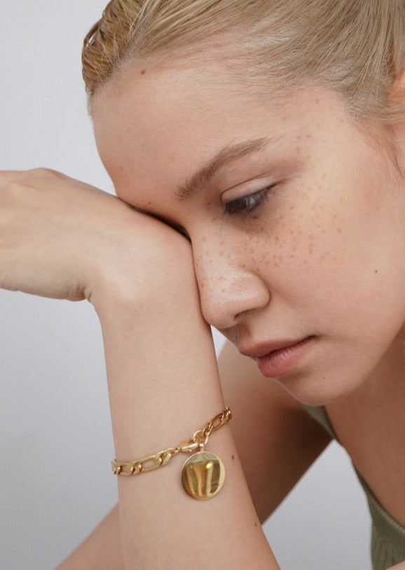 太めのチェーンに無地のコインを組み合わせたブレスレット。