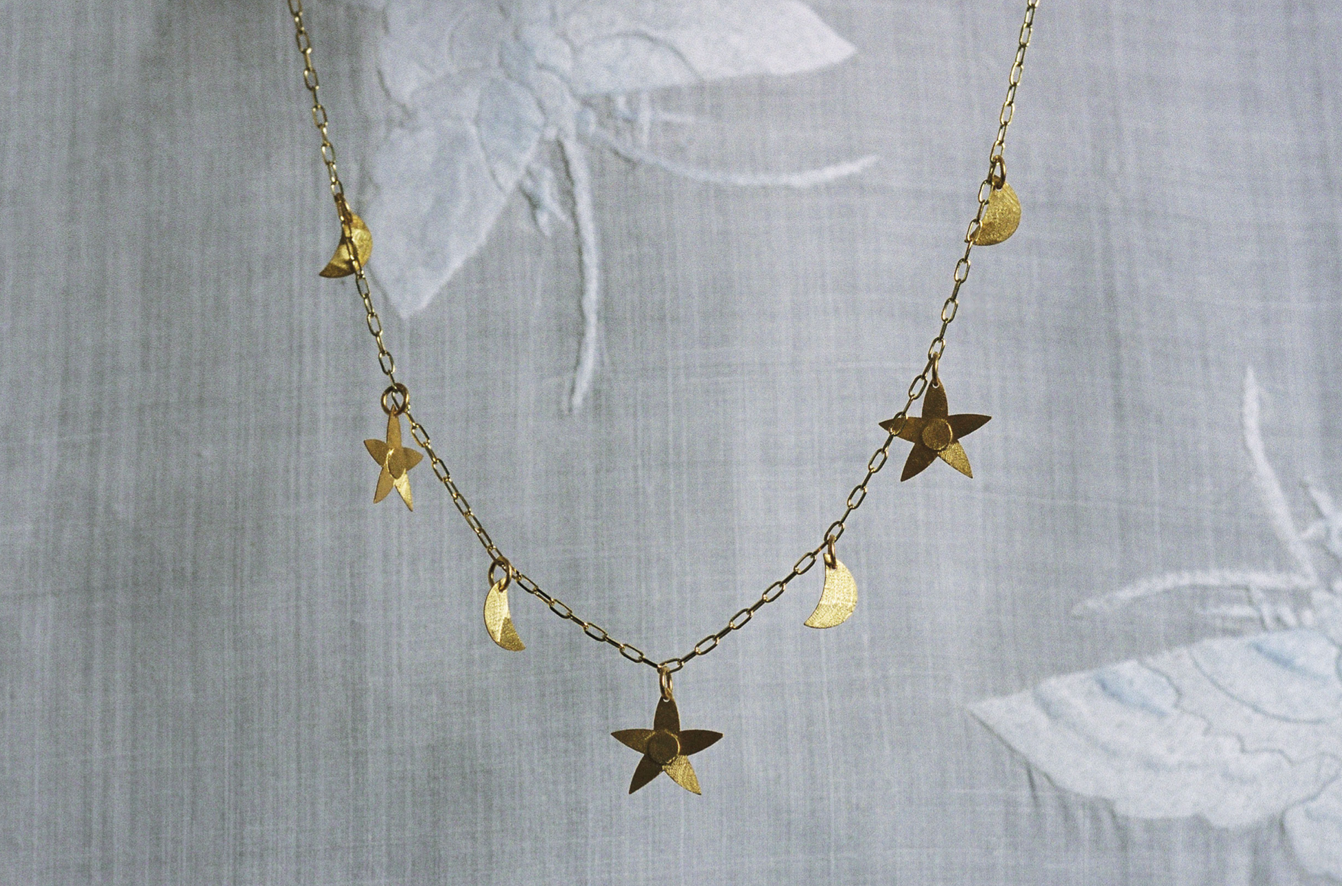 ヴィンテージライクなマットなゴールドの風合いが絶妙。チェーンの全ての穴にホックを通せるので、長さ調節が自由自在です。チョーカーのように首にそわせて着けるのも◎カジュアルなお洋服と合わせて日常のアクセントにも、ドレスアップにもおすすめです。