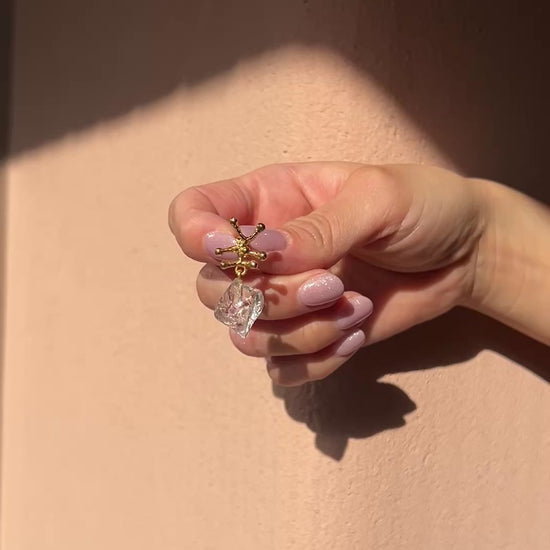 ゴールドのスパイクのようなトップに、生のクリスタルをあしらったピアス。石の自然なフォルムが魅力です。
