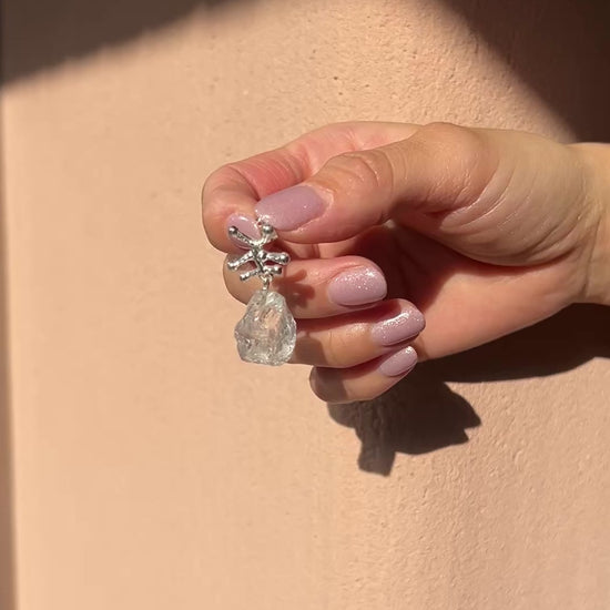 シルバーのスパイクのようなトップに、生のクリスタルをあしらったピアス。石の自然なフォルムが魅力です。