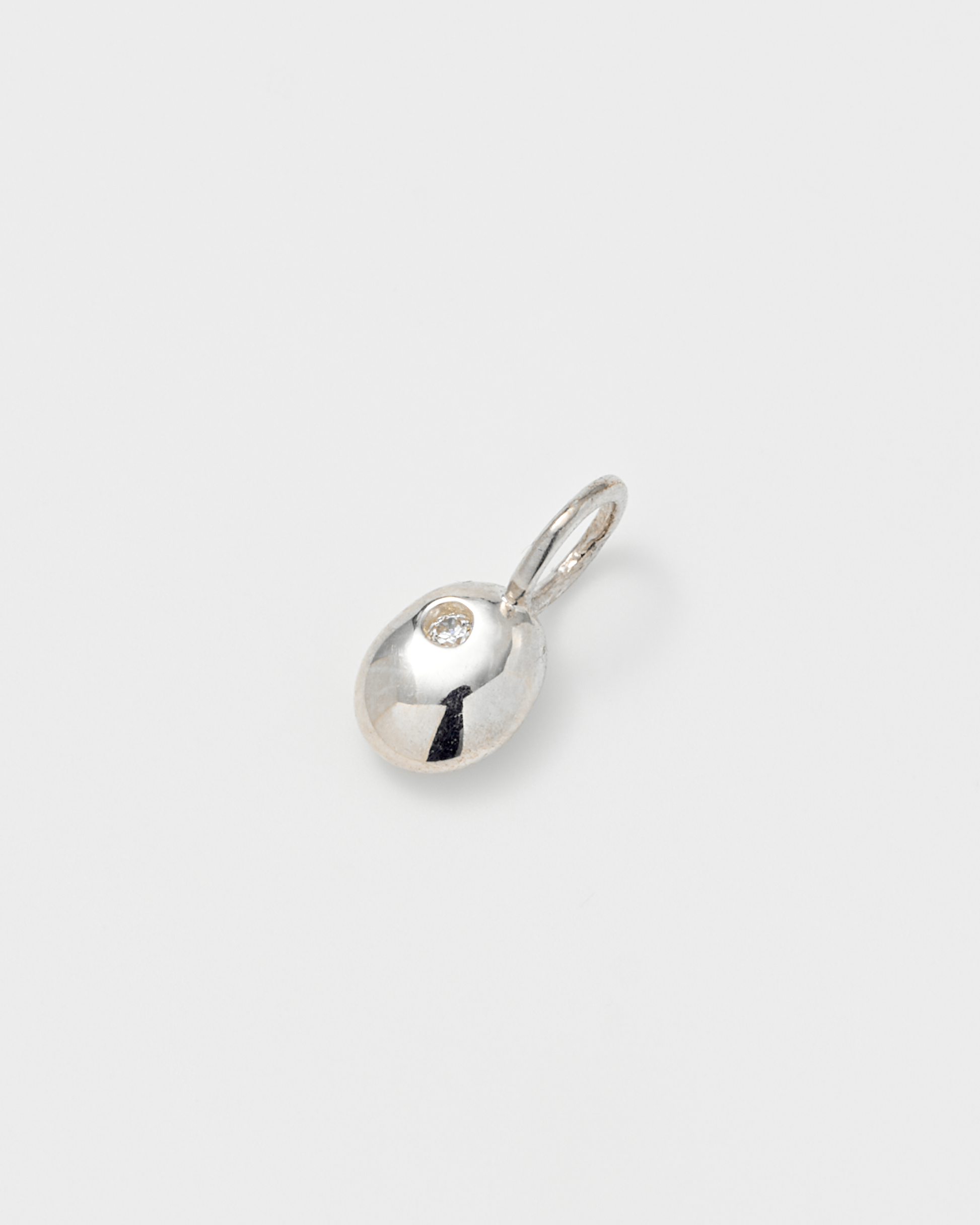 PAULINE STUDIOオリジナル、オリーブのペンダントトップ。種の穴の部分にはジルコンガラスをあしらいました。お揃いのピアスもご用意しています。