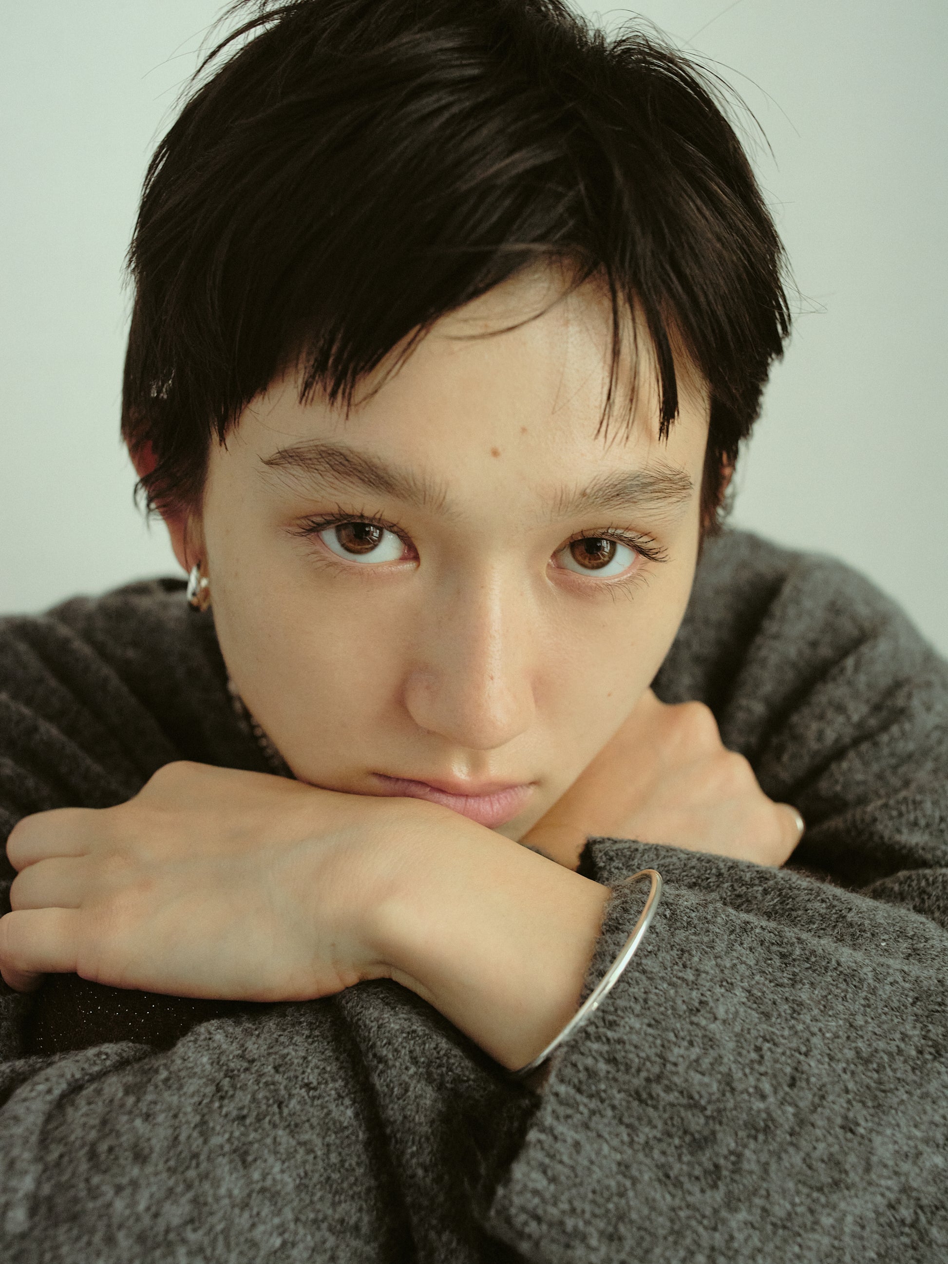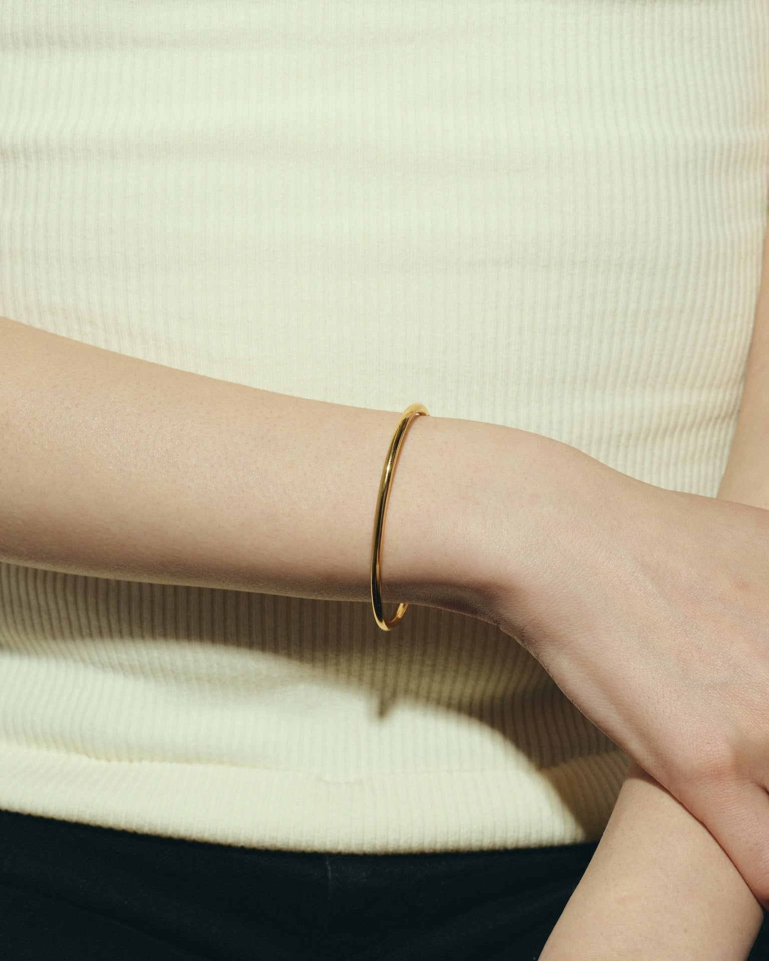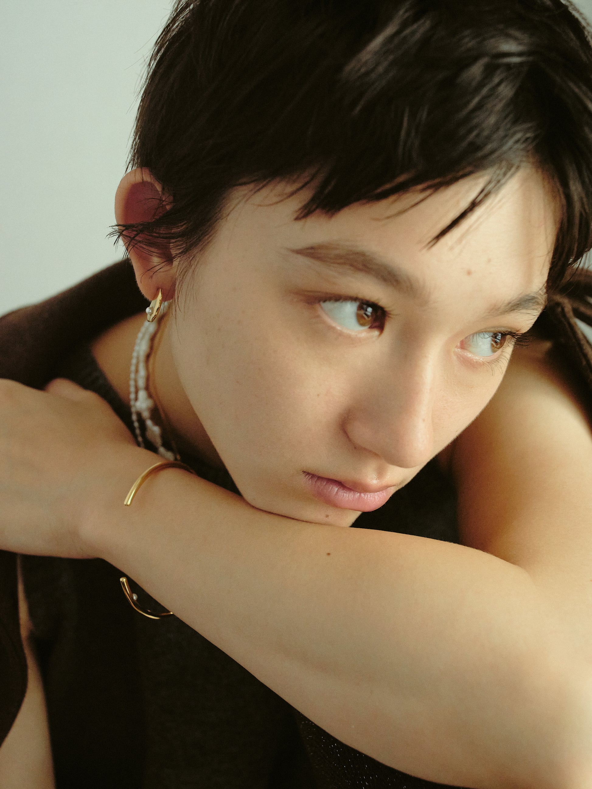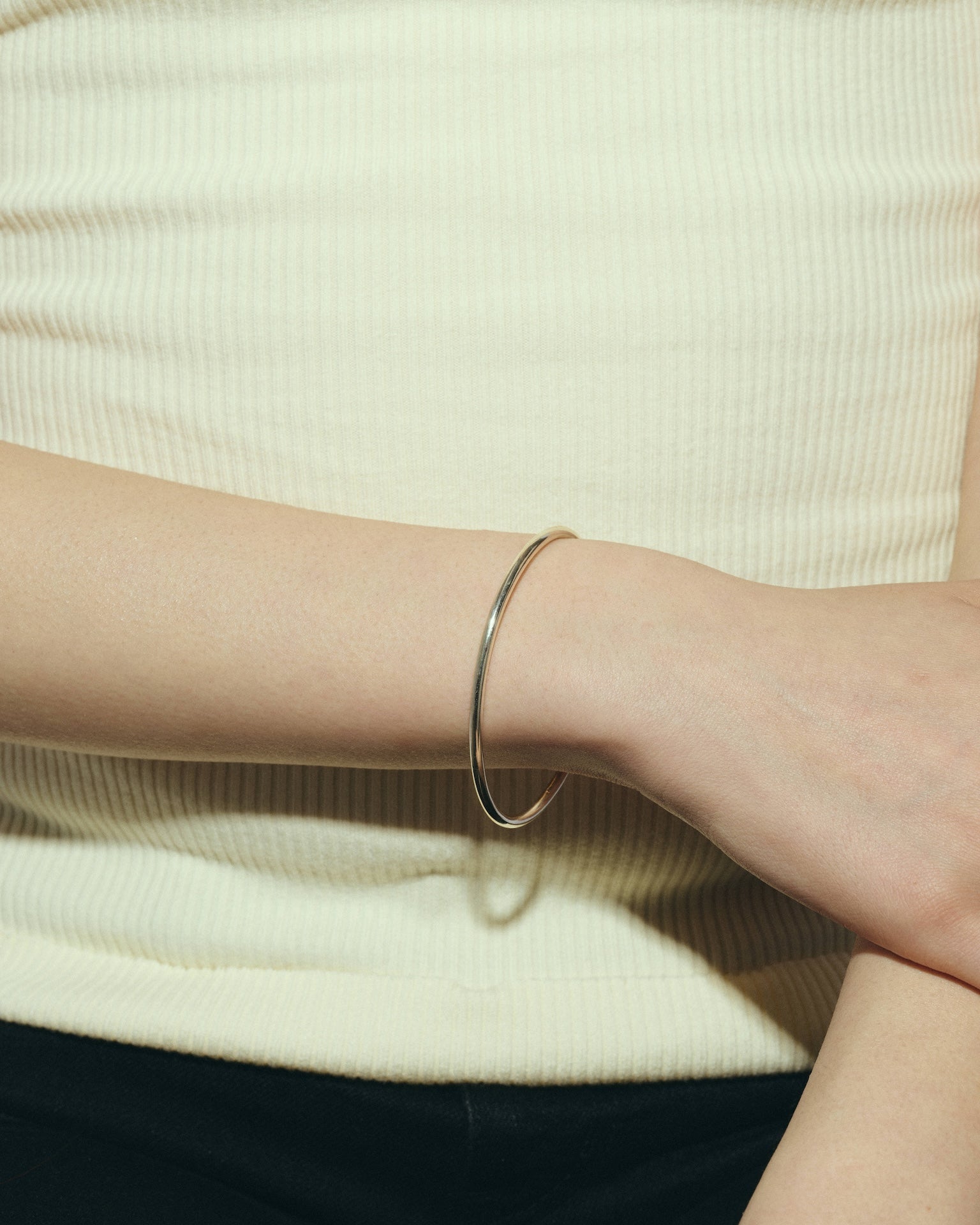 内側に一粒パールをあしらったシンプルなバングルです。Silver925製なので重厚感があり、ミニマルなデザインだからこそ、洗練されたディテールと素材の上質さが光ります。