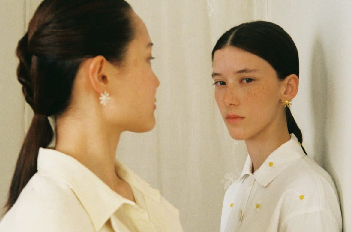 紙のように薄いフラワーモチーフのスタッズピアス。ヴィンテージライクなマットゴールドの風合いが絶妙です。