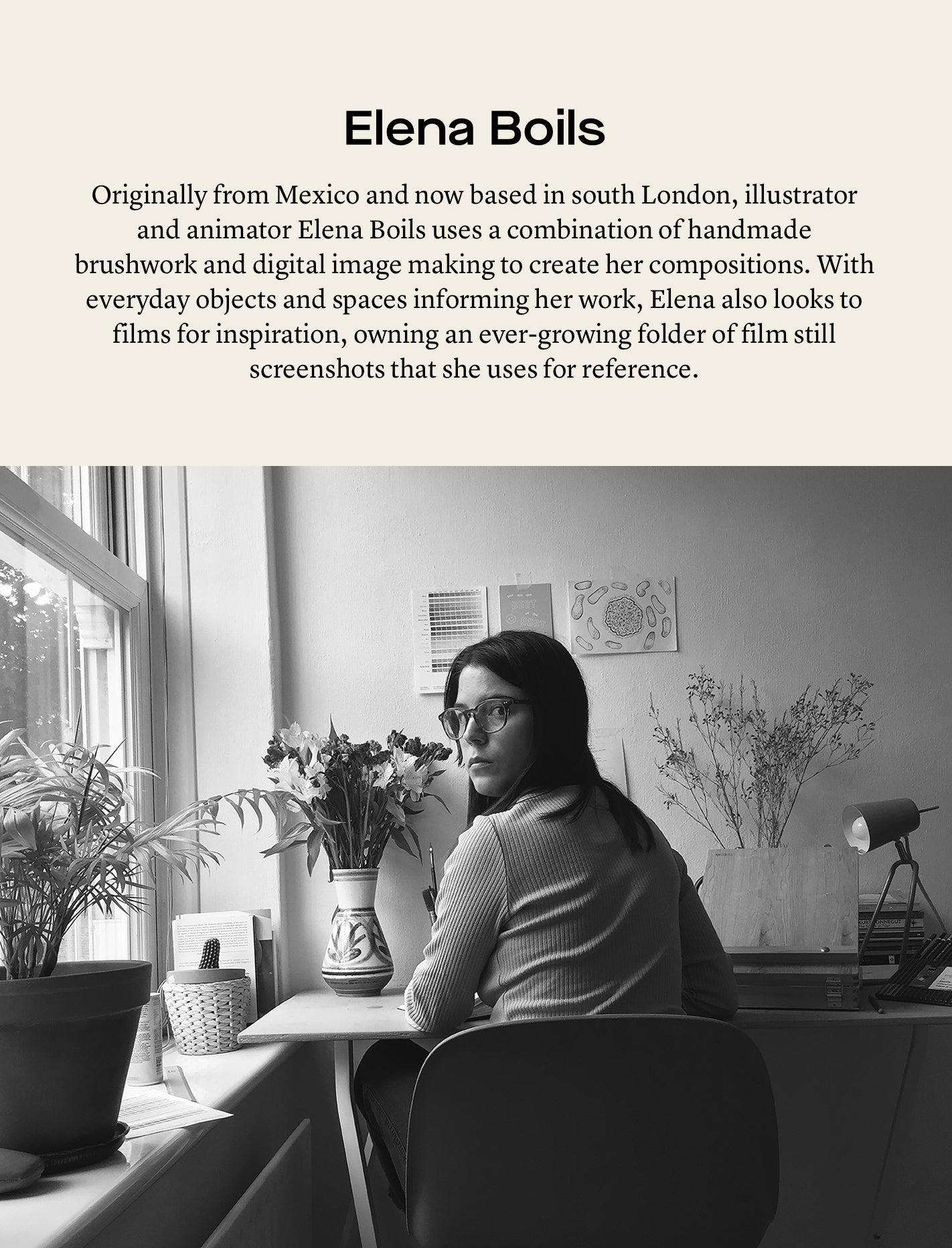 メキシコ出身で、現在はロンドン南部を拠点に活動しているイラストレーター兼アニメーター『Elena Boils』の作品を印刷した、折りたたみタイプのカードと封筒のセット。内側は白紙でメッセージをご記入いただけます。