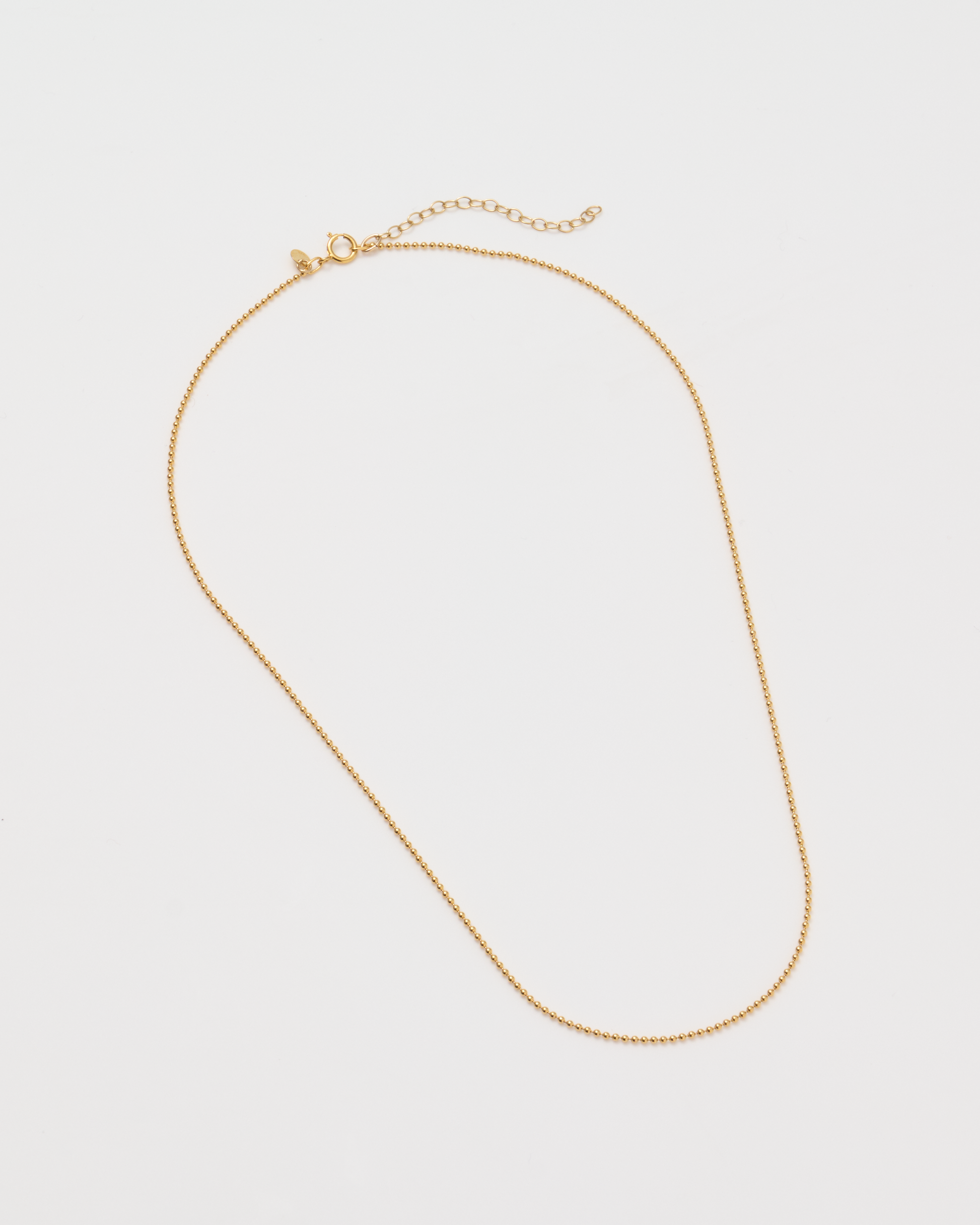 華奢なボールチェーンのネックレス。カッティングは入っていないため輝き過ぎず、カジュアルなスタイリングにも馴染みやすく仕上がっています。
